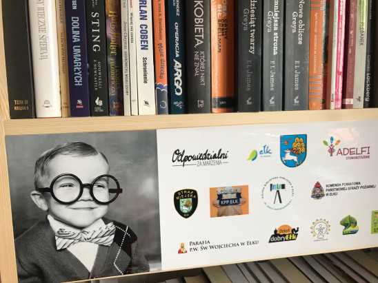 Oprócz osób prywatnych w zbiórkę ( w ramach akcji “Ełczanin z Wielkim Sercem”) włączyły się także instytucje, których logo umieszczone zostało na regałach bibliotecznych: