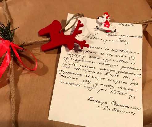 Ps. Bardzo dziękujemy małym wolontariuszom - elfom za pomoc przy pakowaniu prezentów. Szczególne podziękowania składamy Łukaszowi i Jowicie za piękne prezenty, które od Was otrzymaliśmy i które możemy z wielką radością przekazać dalej. To dopiero początek ciężkiej pracy, trzymajcie kciuki:)